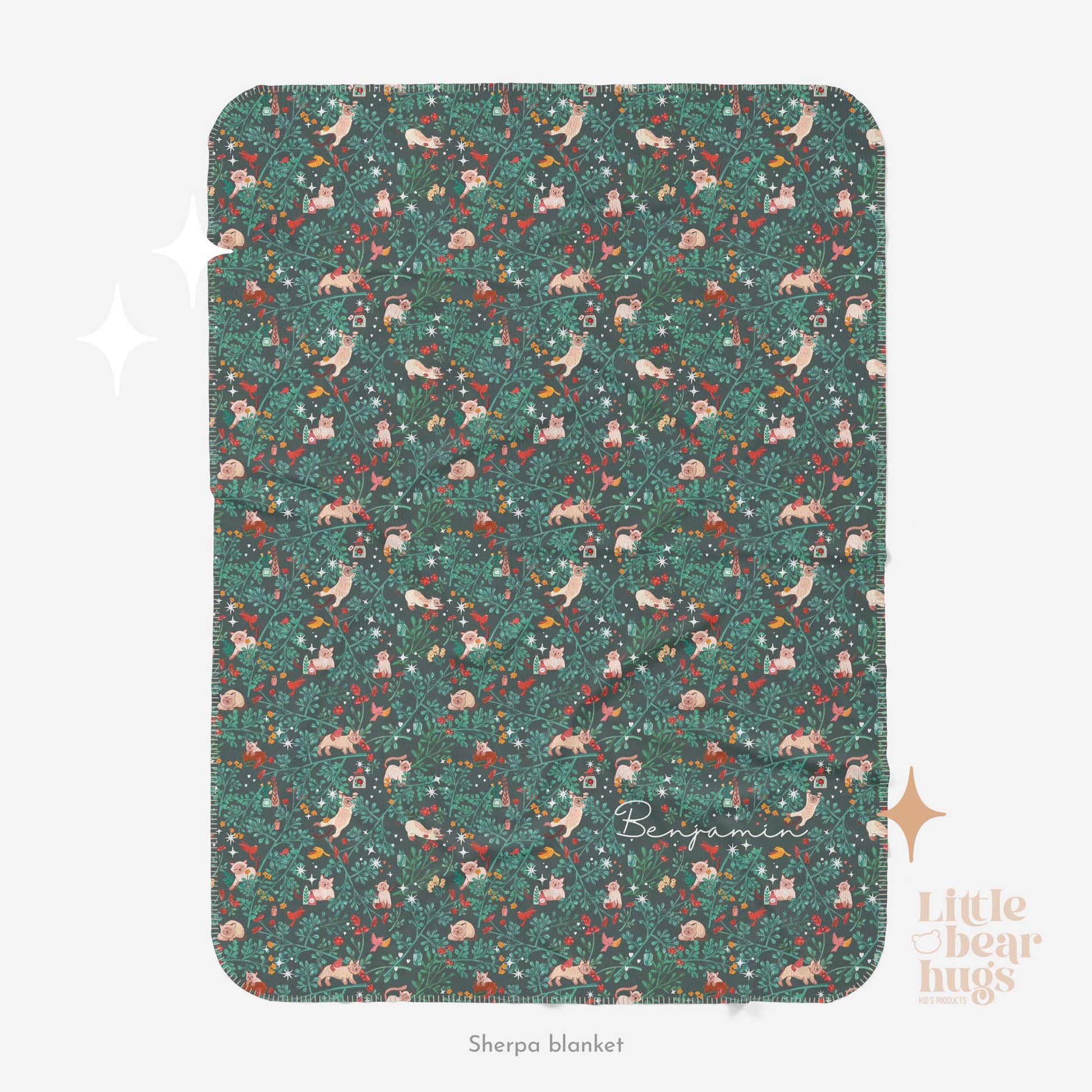 Sherpa: The blanket is 100% polyester printed mink with ultra-soft sherpa backing. It has round borders, with a stitched end. Sherpa side is non-customizable and the color is brown. To care, just wash before first use, using a cold cycle. Air dry to maintain the fluffiness of the Sherpa.