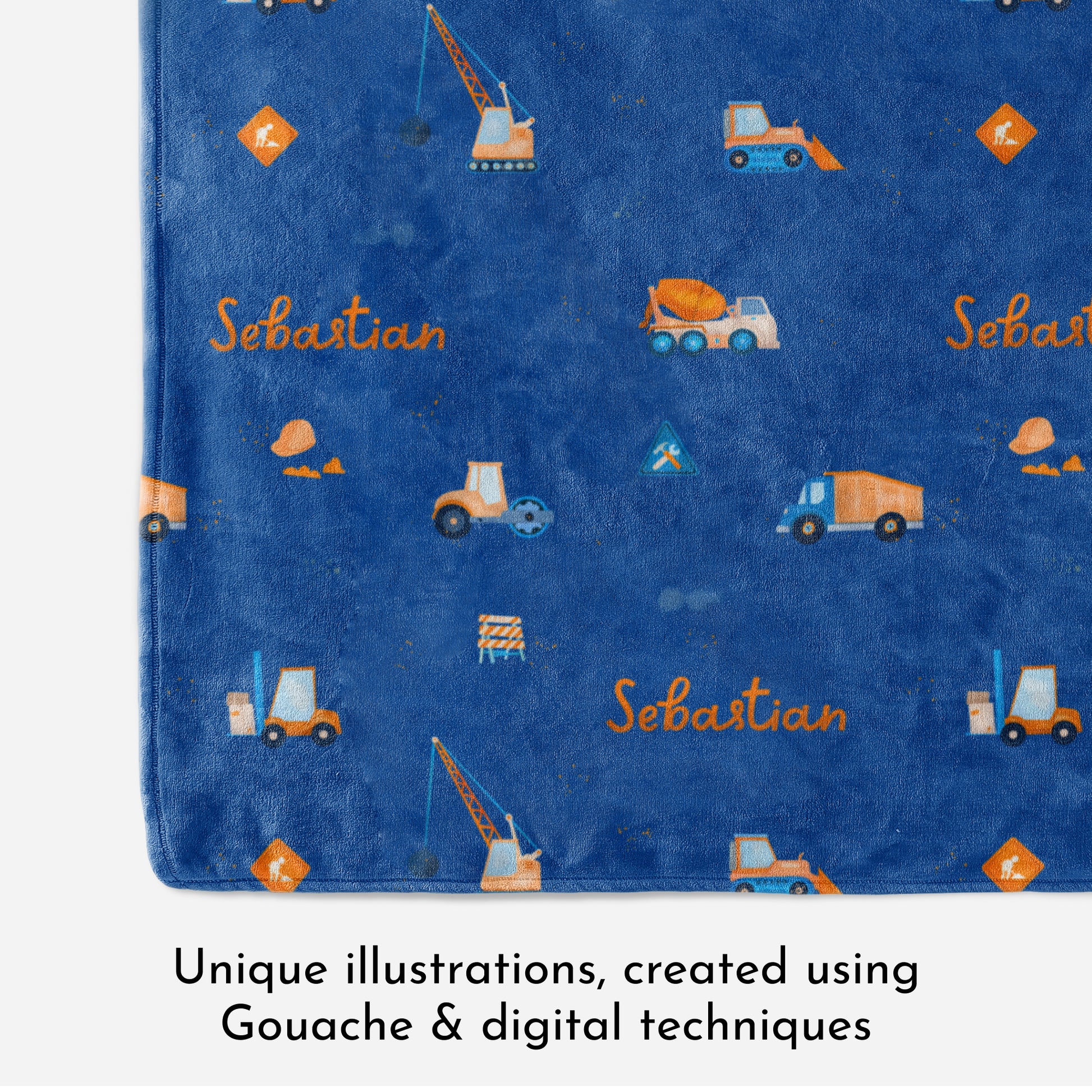 Build cozy and creative dreams with our Construction Personalized Blanket! This soft, customized cover features adorable construction-themed illustrations, perfect for inspiring your little builder's imagination. Personalize it for a truly unique touch. Dream big and snuggle up!