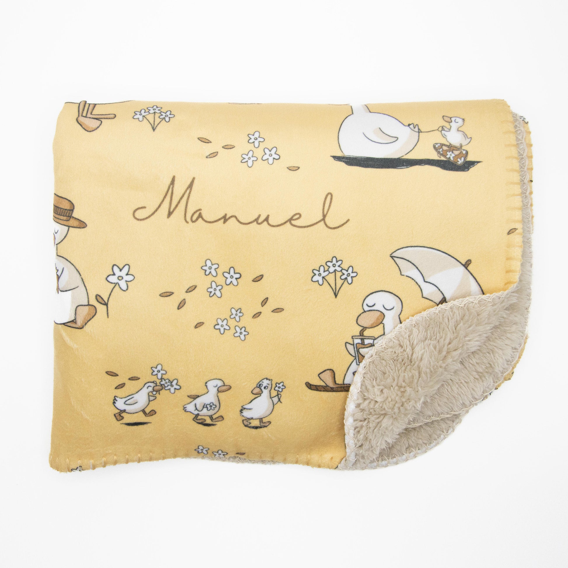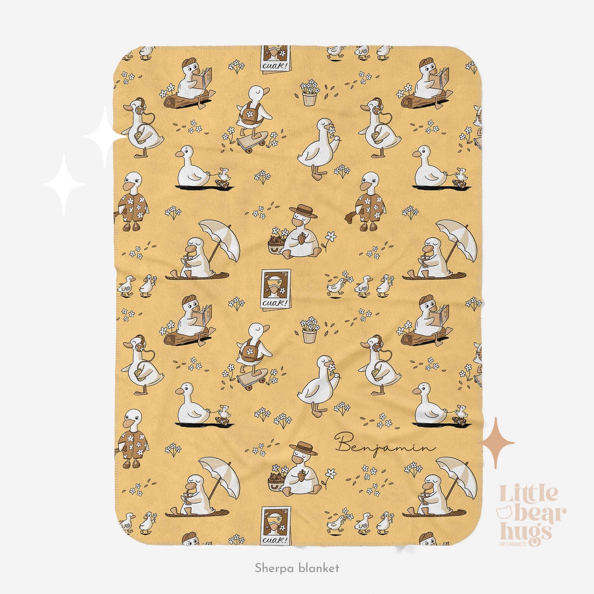 Enjoy this personalized and very soft baby ducky sherpa blanket, because... what toddler is not obsessed with ducks! cuak! Gift your little one with this super personalized cute yellow ducky blanket. It's perfect for any time of the year and beautiful for photo backgrounds! Make it personal by customizing the blanket with a name. Choose between 30x40" (perfect for a stroller!) or 50"x60" (perfect for toddlers!).