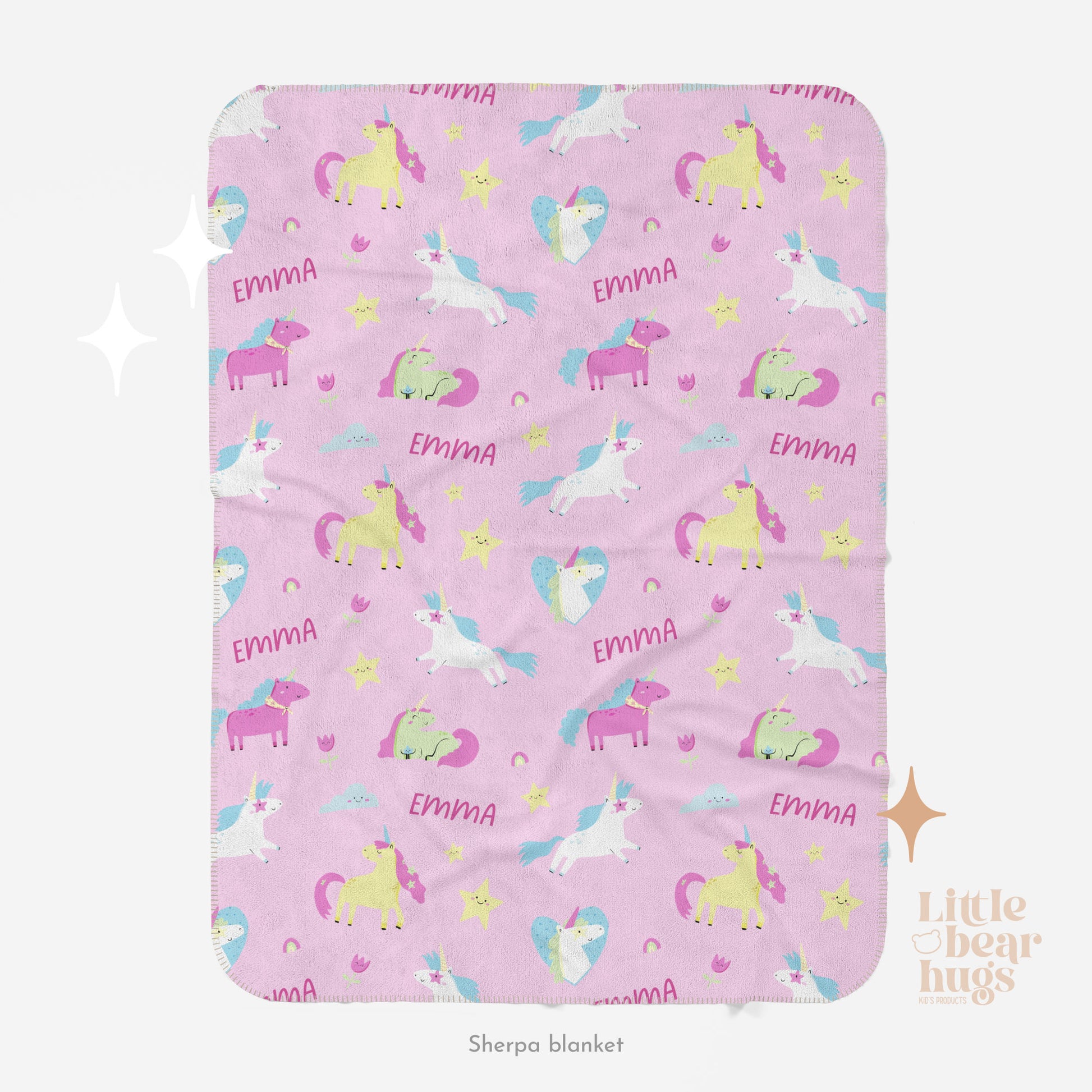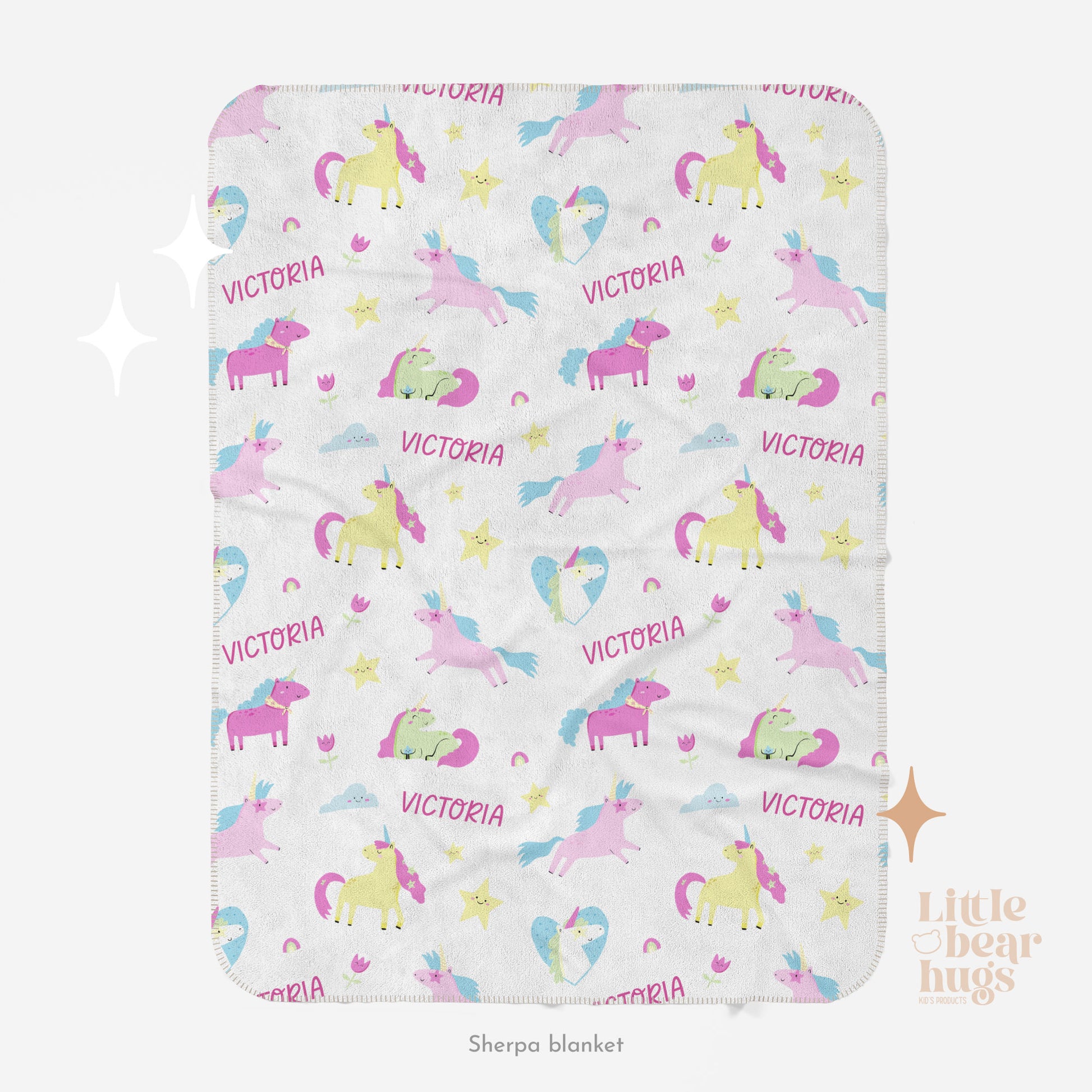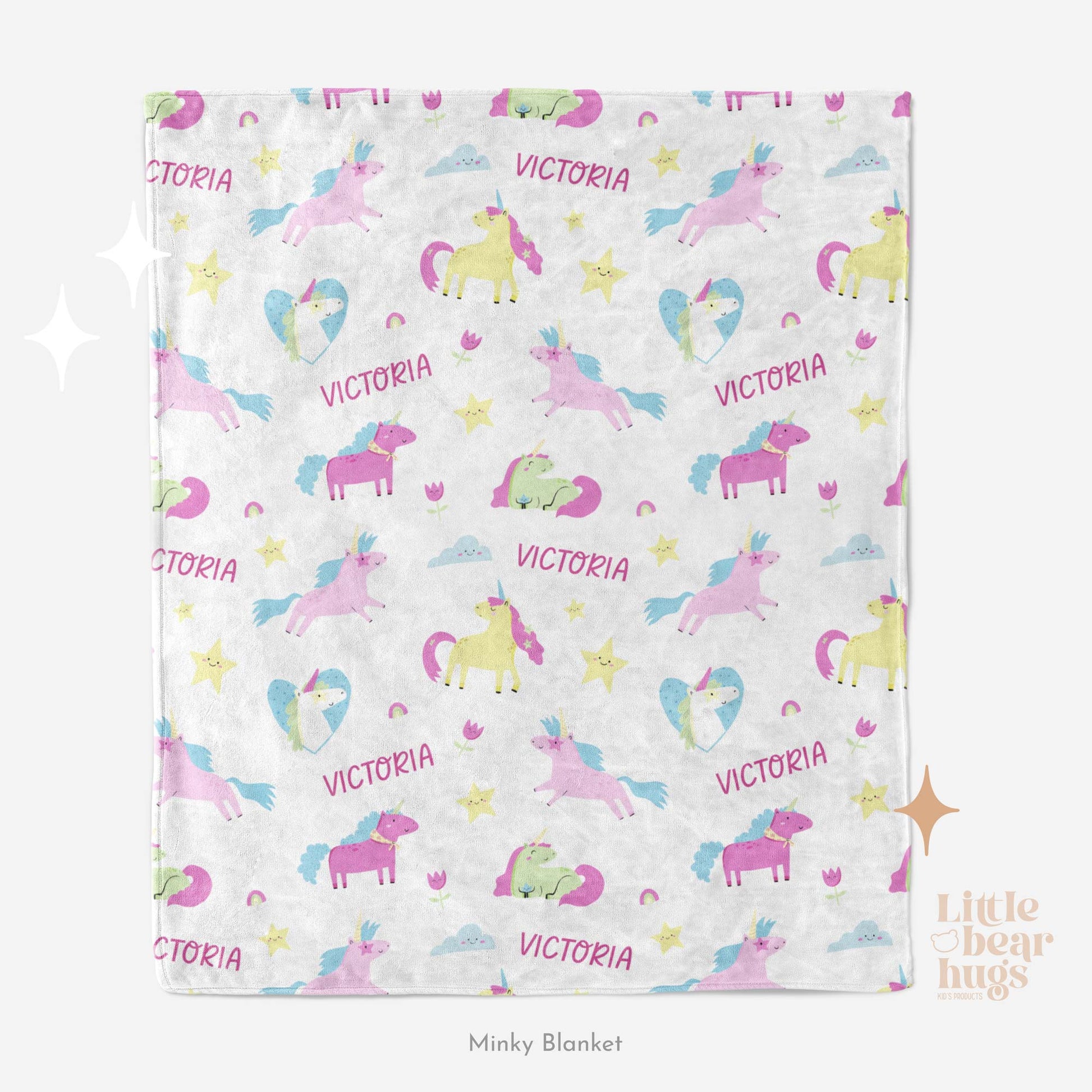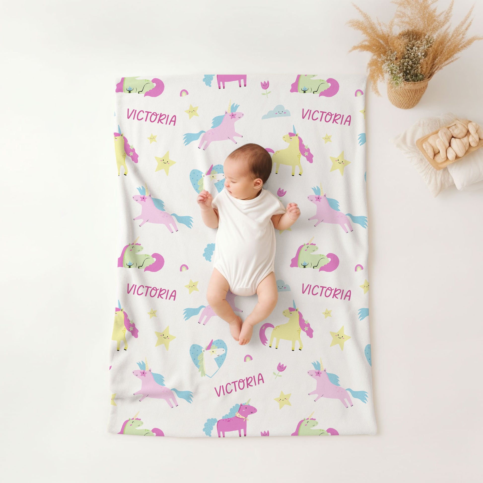 Wrap your little one in the magic of our Enchanted Unicorn personalized blanket! Featuring a whimsical unicorns design and a custom name repeated, this cozy blanket is a unique and playful addition to any kid's room. Perfect for snuggles and imaginative adventures.