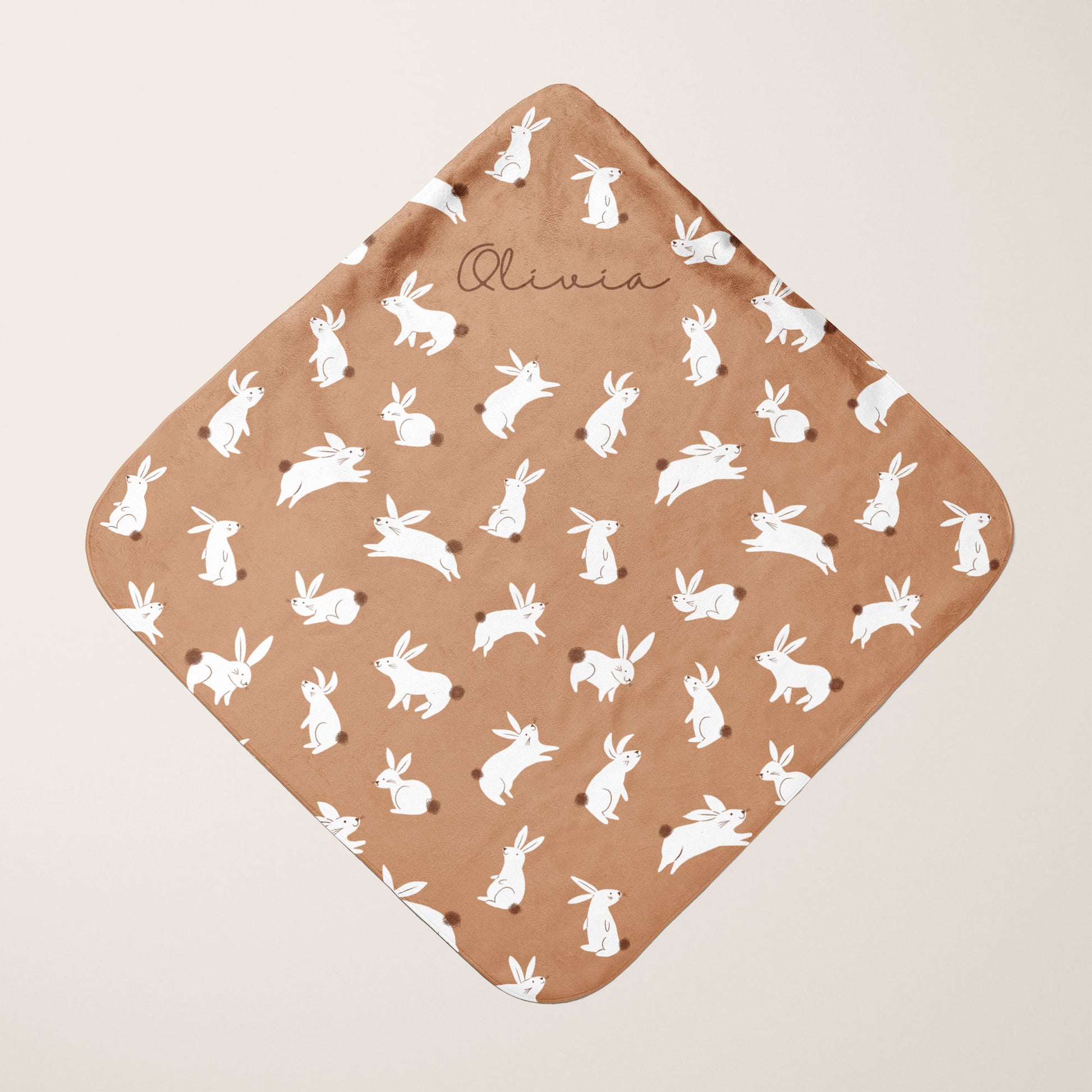 This super soft baby bath towel is hand sewn with a two-piece hood and measures approximately 30" x 30" with rounded corners. Towel fabric features a velvety soft polyester fleece top printed edge to edge, with a cotton loop white back that's perfectly absorbent for snuggling up and staying dry.