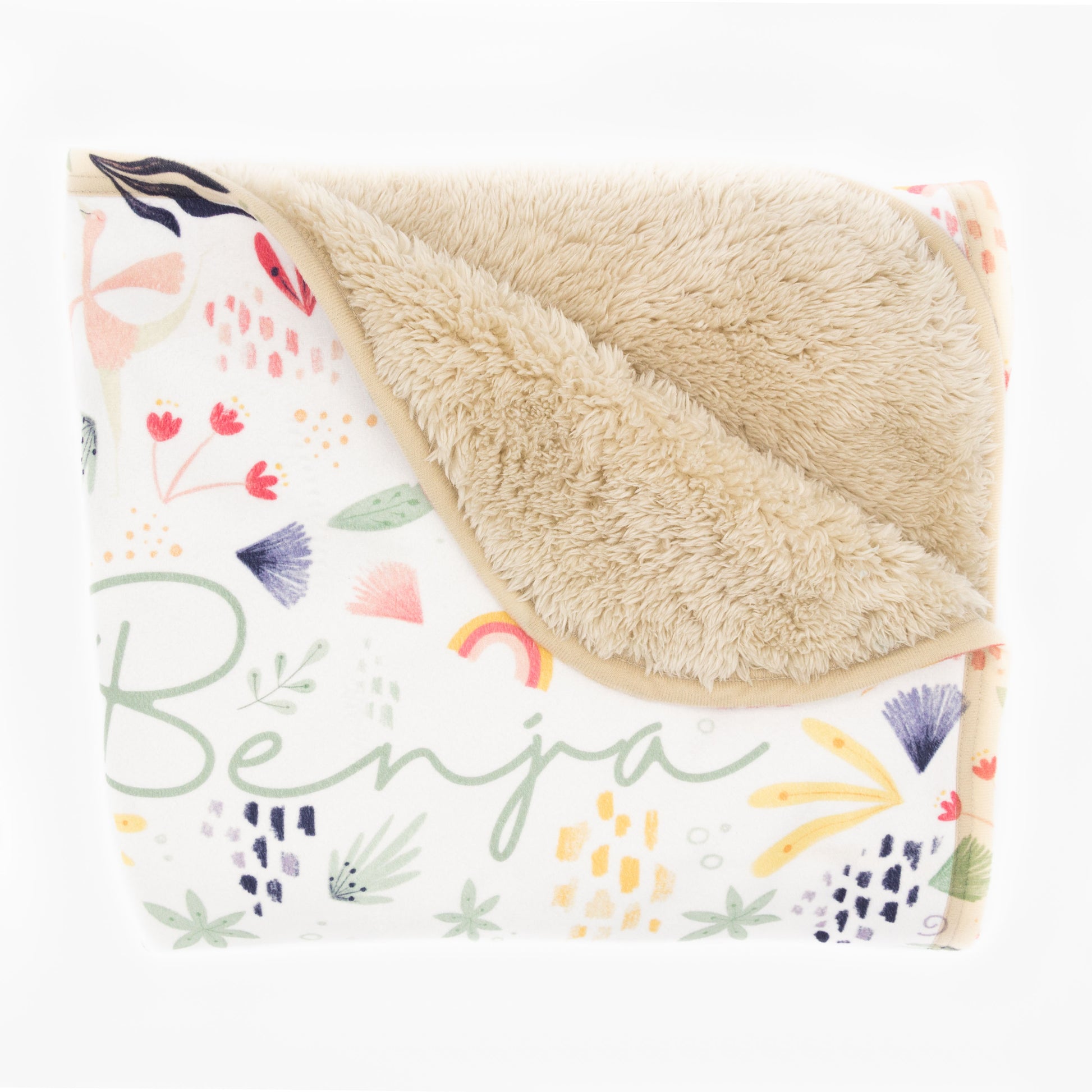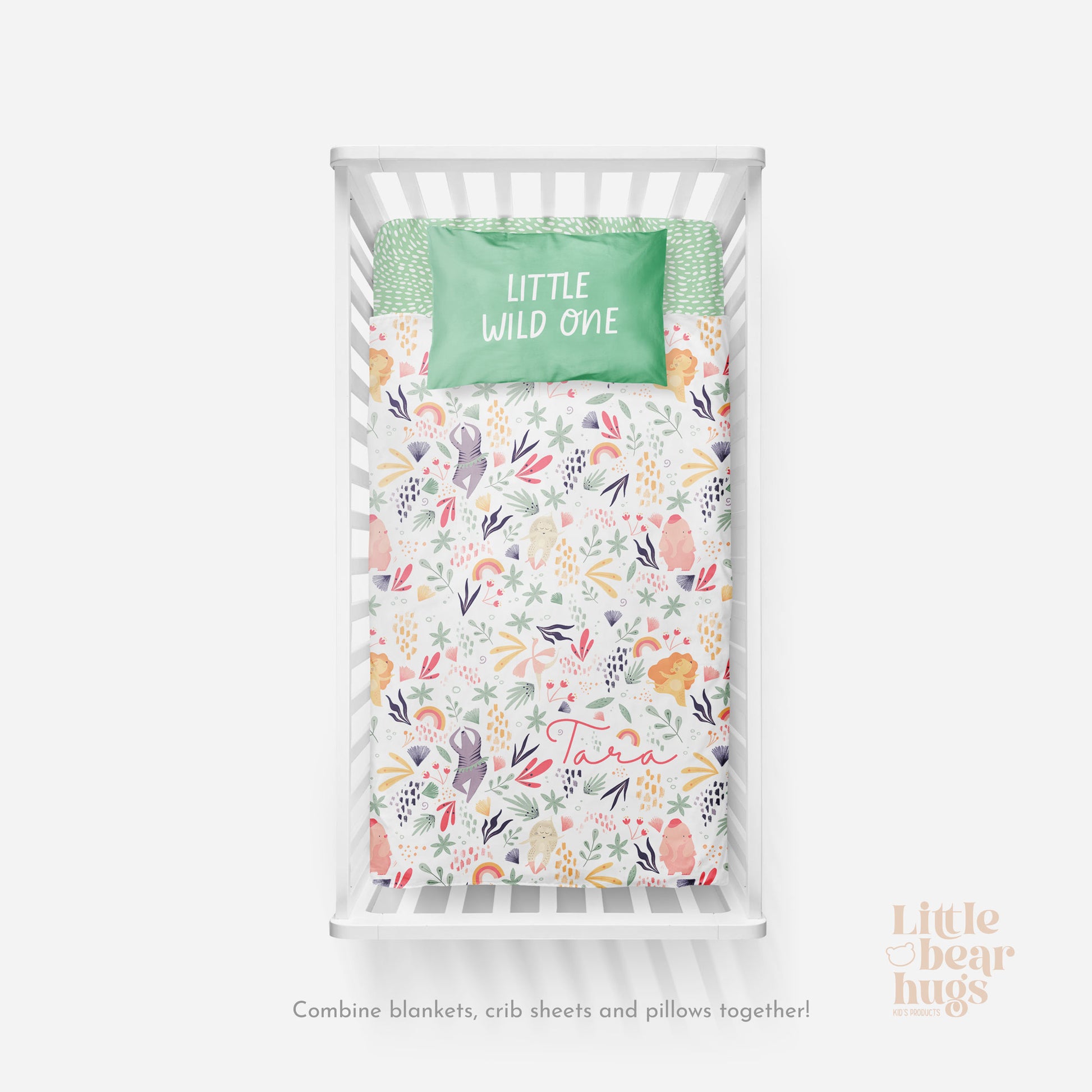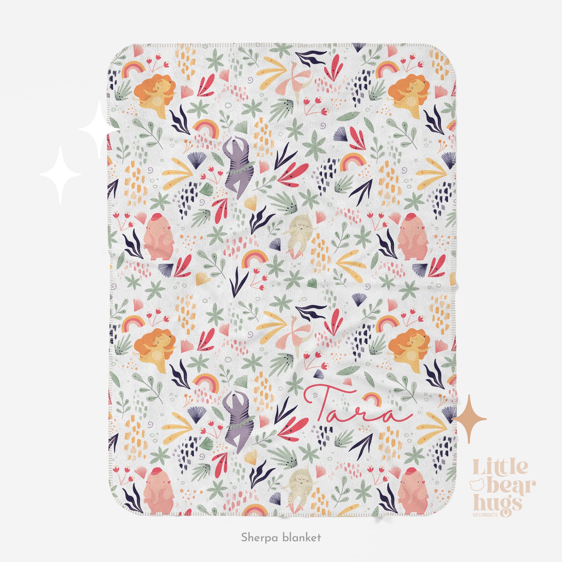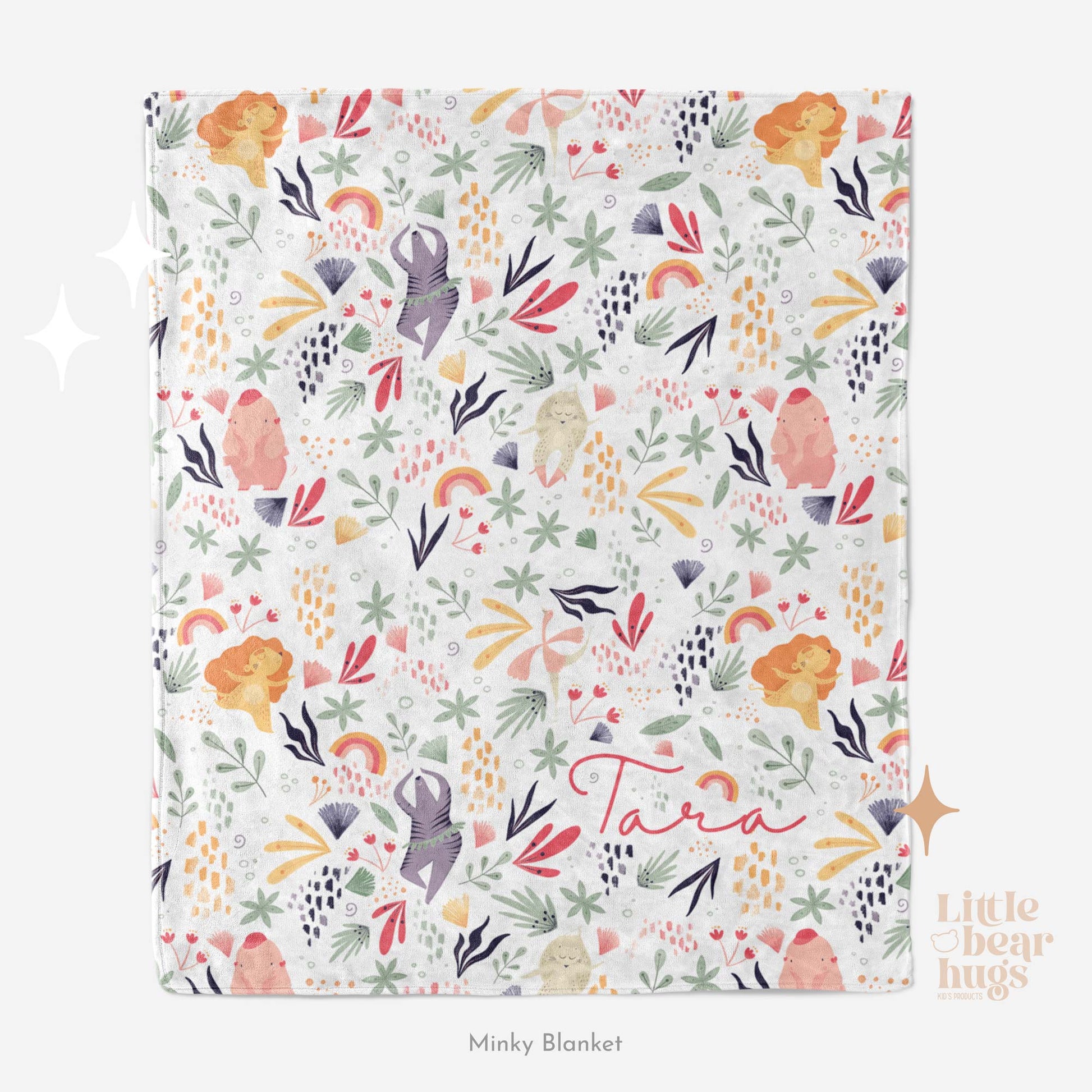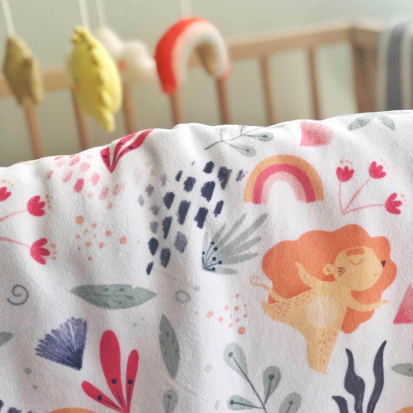 Our bestseller blanket! The jungle is having a party and all the animals are dancing! It's perfect for any time of the year and beautiful for photo backgrounds. Make it personal by customizing the blanket with a name. Choose between 30x40" (perfect for a stroller!) or 50"x60" (perfect for toddlers!). Roll this baby blanket up and take it anywhere!